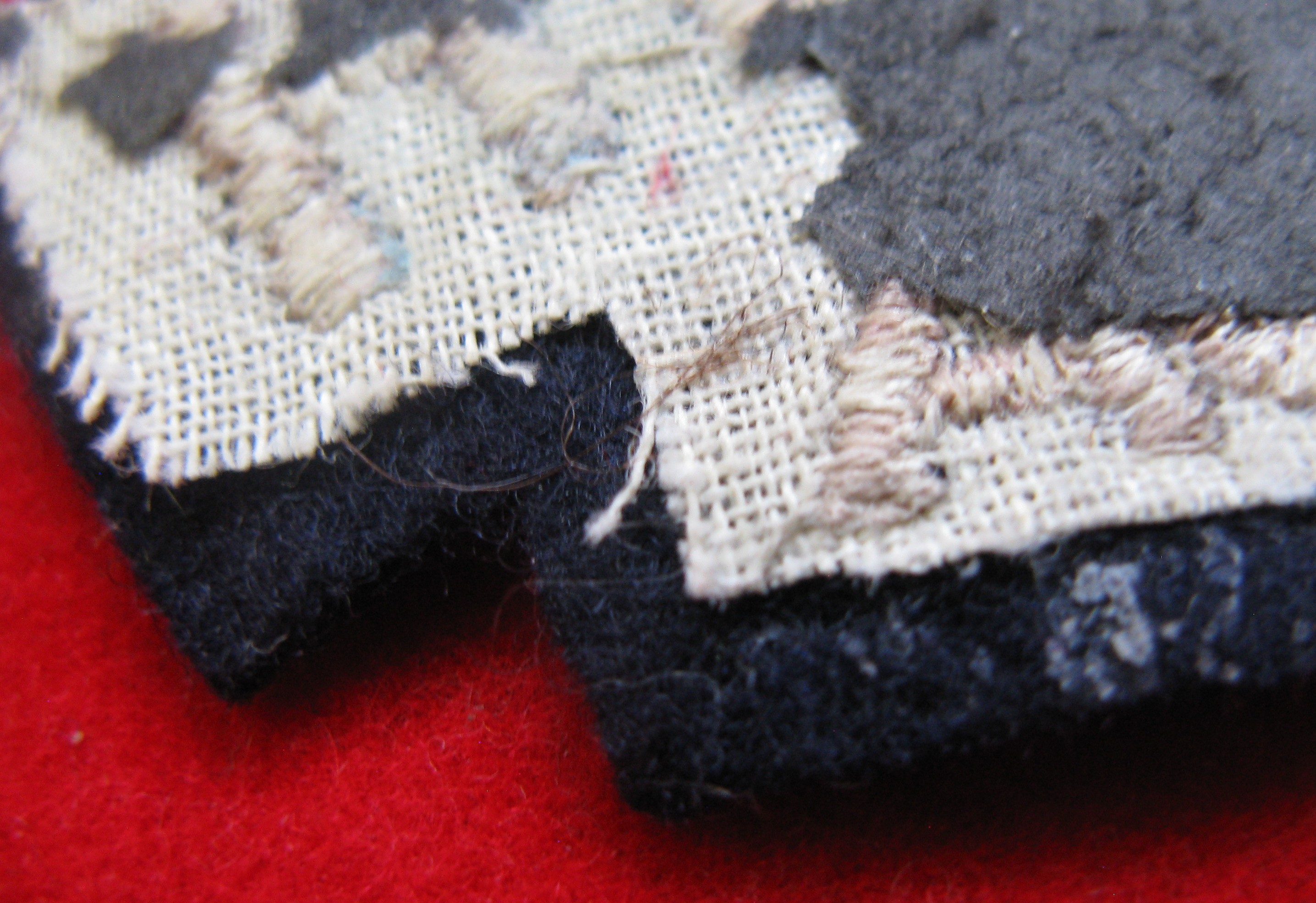 Above, you can view the scans of this 3 peice grouping of WW2 era Seaforth Highlanders Cap badge Shoulder Flash & Button-holer. The badge is a white-metal construction, with both lugs intact. The button-holer pin is plated metal with some red enameling on the crown and scrolling. The shoulder flash is an exquisitly preserved WWII era felt patch with cheesecloth backing, From a collection with some glue residue, but displays beautifully.