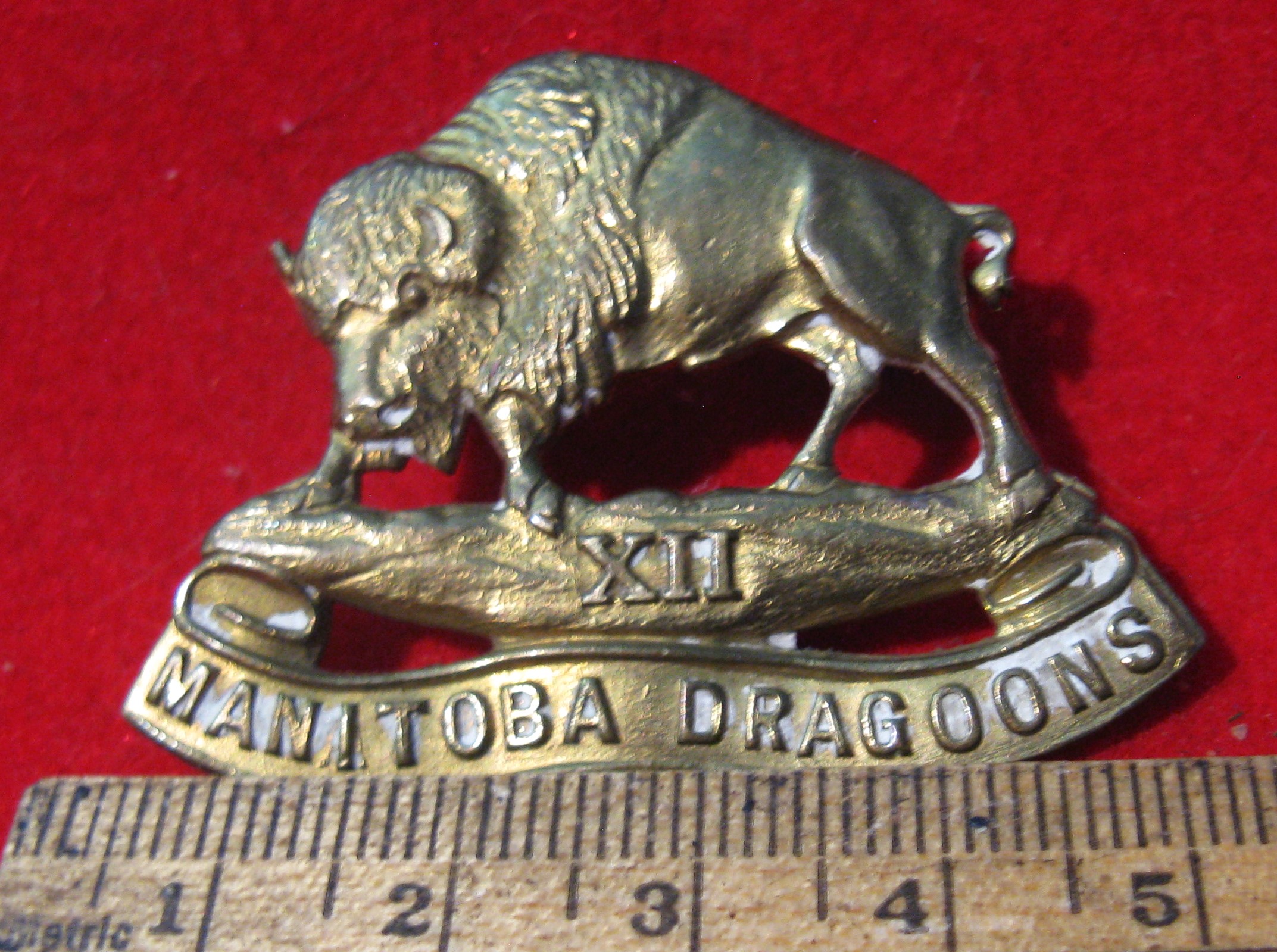 The 12th Manitoba Dragoons was originally formed in 1893. Over the course of its career, it was disbanded and re-organized several times. In 1901 it was re-designated as D Squadron, Canadian Mounted Rifles, but in 1903 the12th Manitoba Dragoons was formed. In 1935 it was absorbed into a Border Horse Regiment, but by 1942 it had been again reorganized and became the 18th (Manitoba) Armoured Car Regiment and was sent to do duties on the home front to free up more men to go overseas. At the end of the WW2 it became the 12th Reserve Manitoba Dragoons. It exists to this present day as a cadet unit in Virden Manitoba.