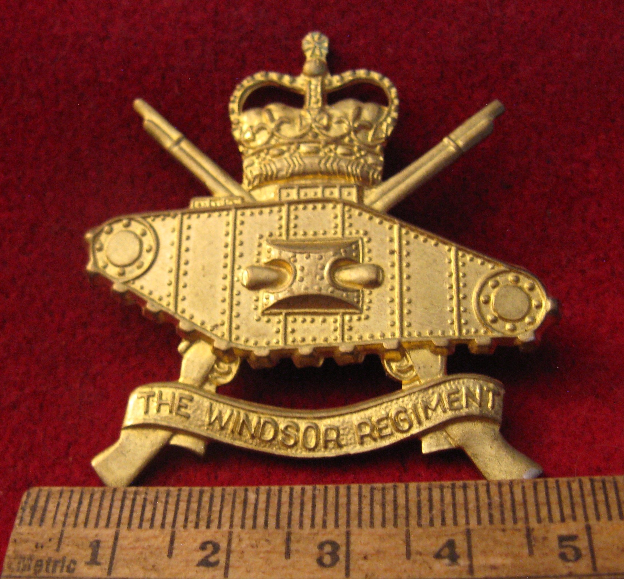 You are viewing a brass post 1953 era cap badge for the Windsor Regiment. This badge has its lug type fasteners, in excellent usable condition. Doesn't appear to have ever seen service.